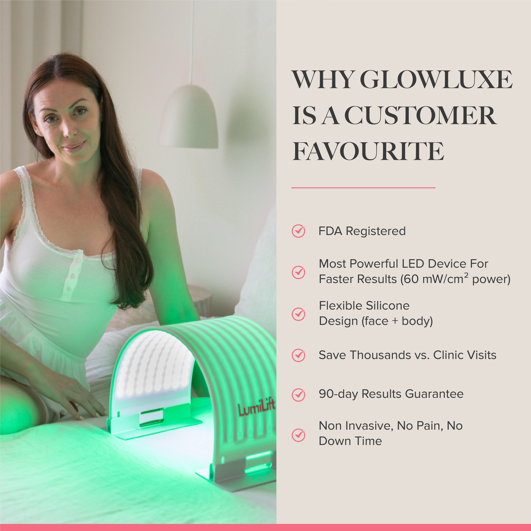 - Combines the anti-aging power of red light with the clarifying effect of blue light
